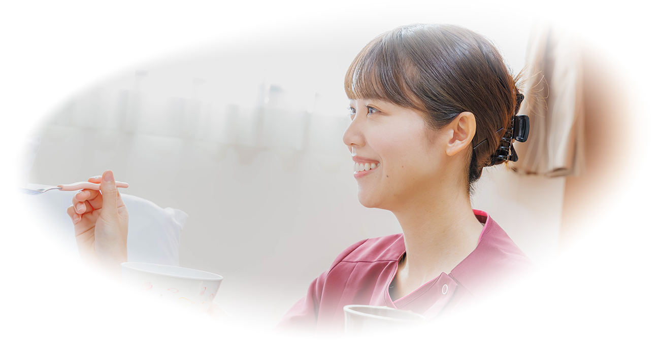 ご入居者様の好みや食べる順番なども把握し、その方に合った介助方法を工夫します。